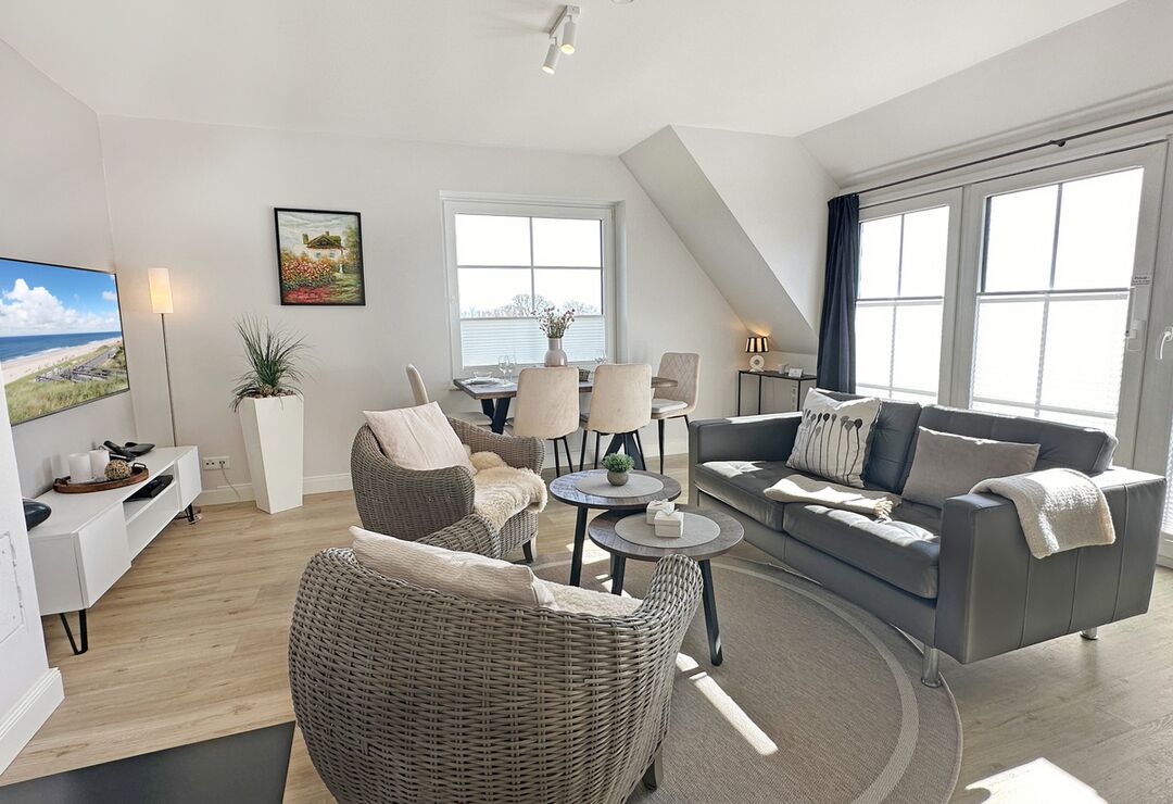 Wohnraum mit Kabel-TV, Radio-/CD-Player, Telefon mit Flatrate (nur Gespräche ins dt. Festnetz möglich!), Internetzugang.