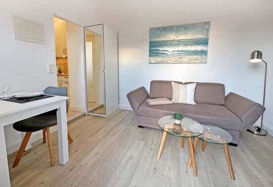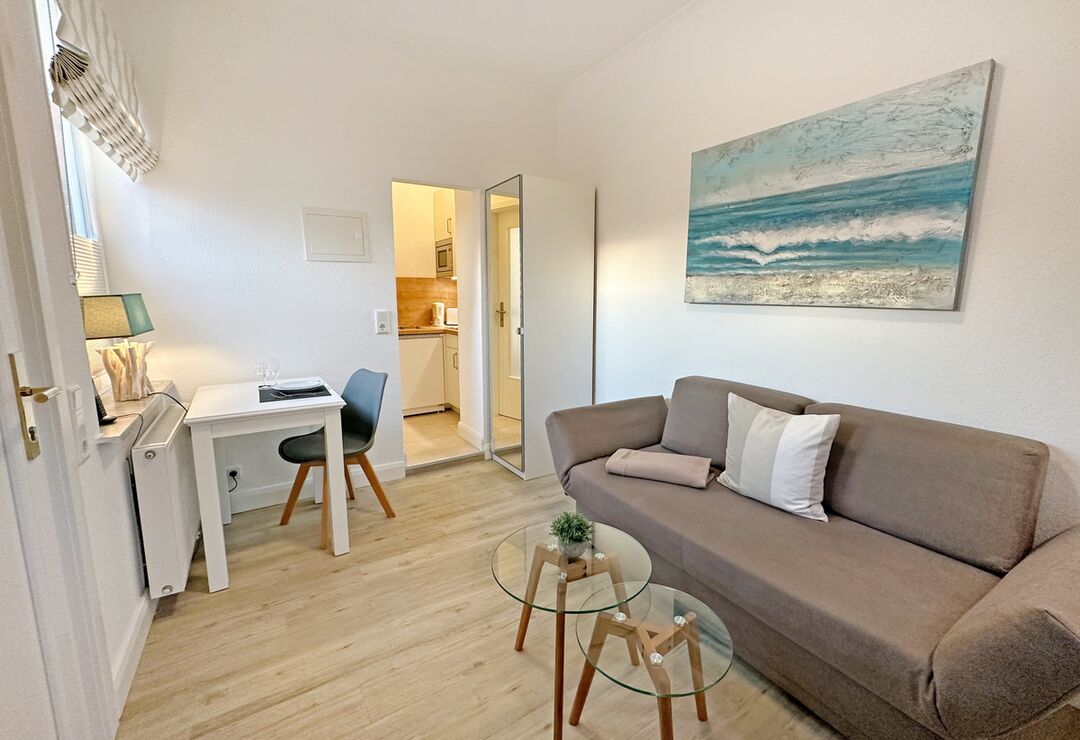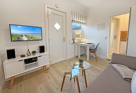 Wohnraum mit Schlafcouch, Sat-TV, Radio, Internetzugang.