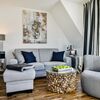 Küche mit Ceranfeld (4 Kochstellen), Geschirrspüler, Kombigerät Backofen/Mikrowelle/Grill, Waschmaschine/Trockner.