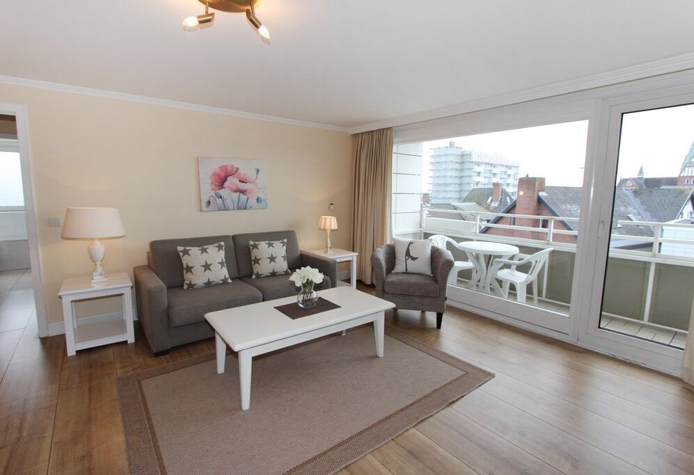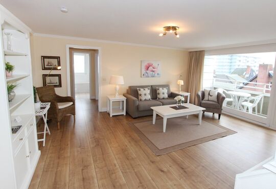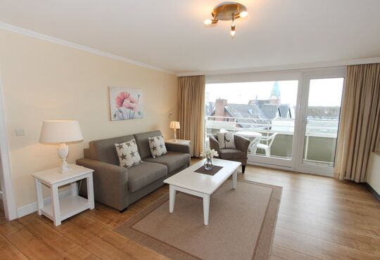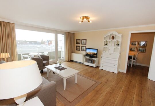 Wohnraum mit Schlafcouch (140x190), Kabel-TV, Radio, CD-Player, Telefon mit Flatrate (nur Gespräche ins dt. Festnetz möglich!), Internetzugang. Südloggia, Tisch/Stühle.