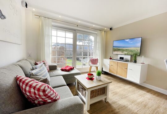 Wohnraum mit Kabel-TV, Radio-/CD-Player, Telefon mit Flatrate (nur Gespräche ins dt. Festnetz möglich!), Internetzugang.