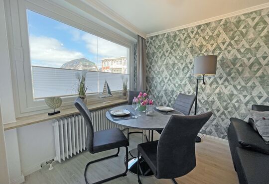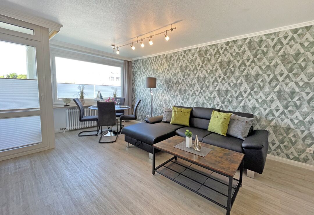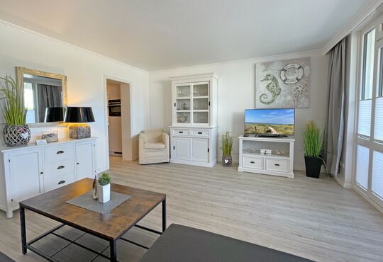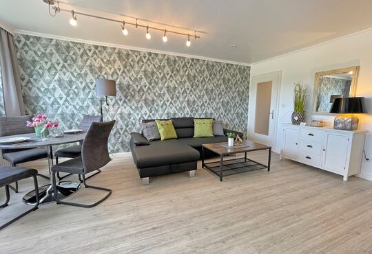 Wohnraum Schlafcouch (160x200), Kabel-TV, Radio, Telefon mit Flatrate (nur Gespräche ins dt. Festnetz möglich!), Internetzugang.