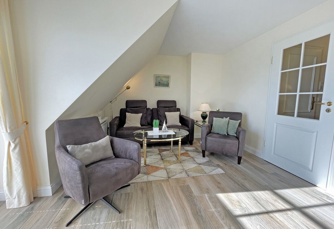 Wohnraum mit Kabel-TV, Radio, Telefon mit Flatrate (nur Gespräche ins dt. Festnetz möglich!), Internetzugang. Südbalkon mit Tisch undStühlen.