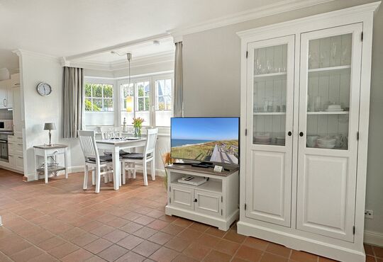 Wohnraum mit Schlafcouch, Kabel-TV, Radio-/CD-Player, Telefon mit Flatrate (nur Gespräche ins dt. Festnetz möglich!), Internetzugang.
