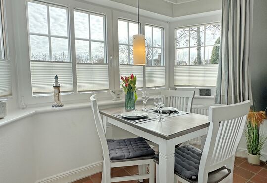 Südterrasse Tisch und Stühlen. Strandkorb (April-Oktober).