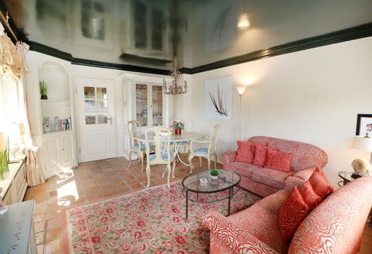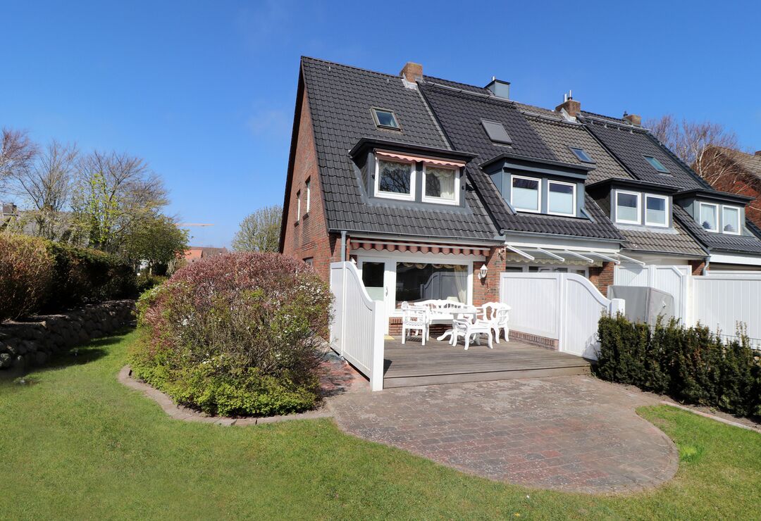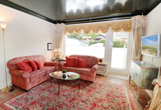 Wohnraum mit Kabel-TV, Radio-/CD-Player, Internetzugang. Südterrasse mit Tisch und Stühlen. Garten mit Liegewiese, Strandkorb (April-Oktober).