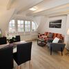 Westterrasse mit Tisch und Stühlen, Strandkorb (April-Oktober).