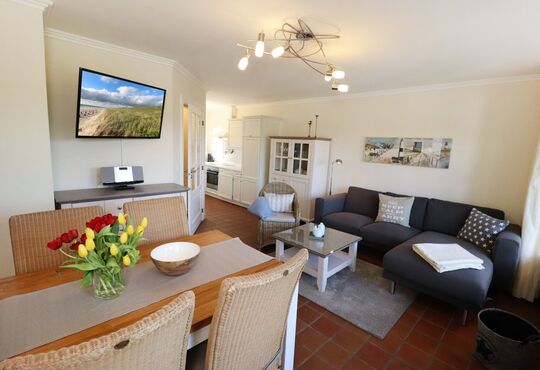 Wohnraum mit Kabel-TV, Radio, CD-Player, Telefon mit Flatrate (nur Gespräche ins dt. Festnetz möglich!), Internetzugang.