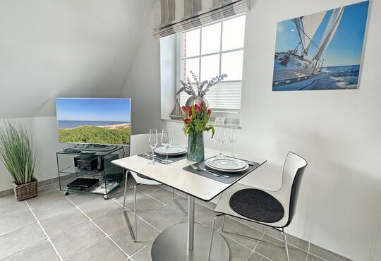 Wohnraum mit Kabel-TV, Radio/CD-Player, Telefon mit Flatrate (nur Gespräche ins dt. Festnetz möglich!), Internetzugang.