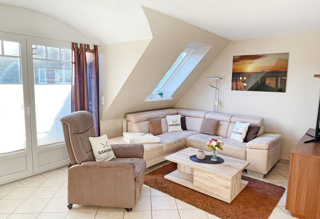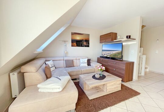 Wohnraum mit Kabel-TV, Radio/CD-Player, Blu-ray-Player. Telefon mit Flatrate (nur Gespräche ins dt. Festnetz möglich!), Internetzugang.