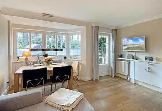 Wohnraum mit Kabel-TV, Radio-/CD-Player, Telefon mit Flatrate (nur Gespräche ins dt. Festnetz möglich!), Internetzugang,