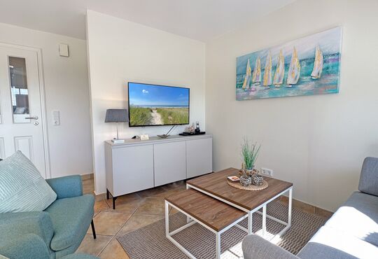 Wohnraum mit Kabel-TV, Radio/CD-Player, Blu-ray Player, Telefon mit Flatrate (nur Gespräche ins dt. Festnetz möglich!), Internetzugang. Südbalkon mit Tisch und Stühlen.