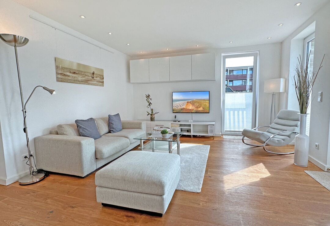 Wohnraum mit Couch, Kabel-TV, Radio/CD-Player, Internetzugang.