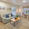 Küchenzeile im Wohnraum mit Ceranfeld (4 Kochstellen), Mikrowelle, Geschirrspüler, Kaffeemaschine, Wasserkocher, Toaster.