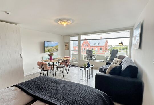 Wohnraum mit (Schlaf)couch, Doppelbett (160x200), Kabel-TV, Radio, Internetzugang.