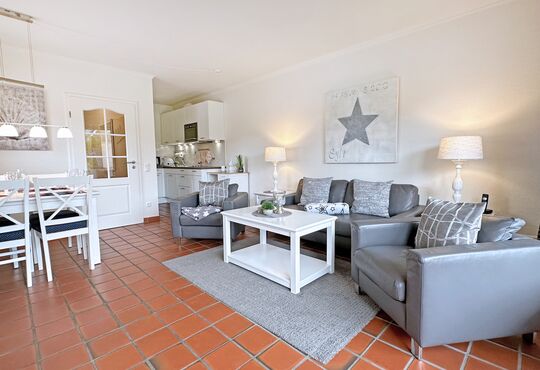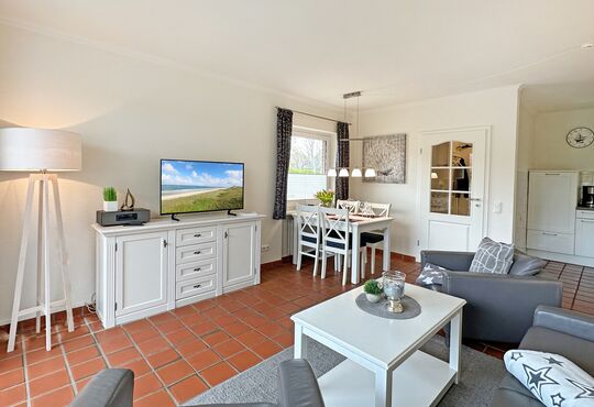 Wohnraum mit Kabel-TV, Radio, CD-Player, Telefon mit Flatrate (nur Gespräche ins dt. Festnetz möglich!), Internetzugang.