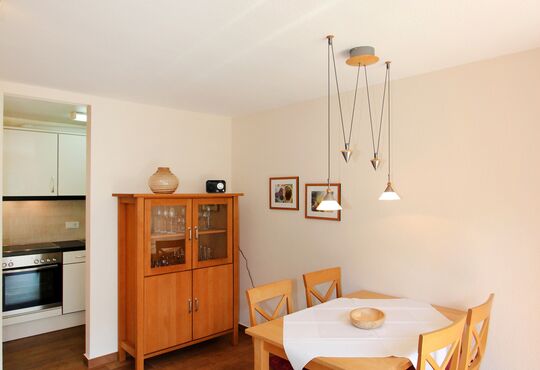 Südterrasse mt Tisch und Stühlen.