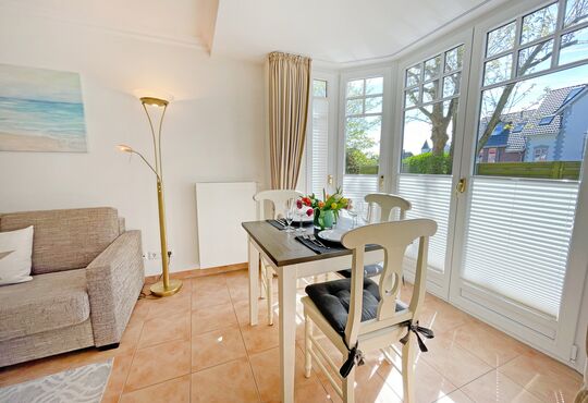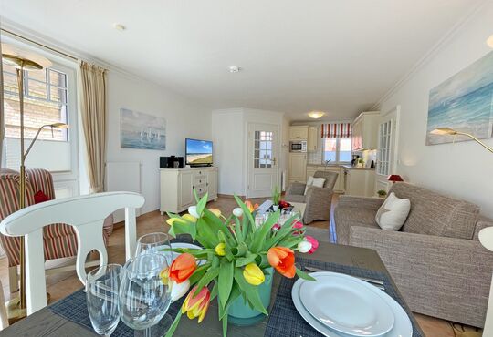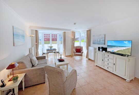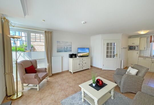 Wohnraum mit Kabel-TV, Radio, Blu-ray Player, Telefon mit Flatrate (nur Gespräche ins dt. Festnetz möglich!), Internetzugang.