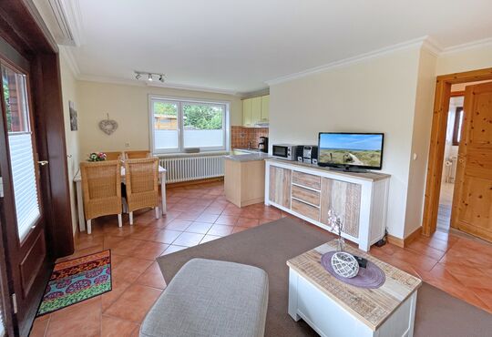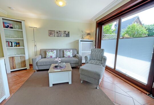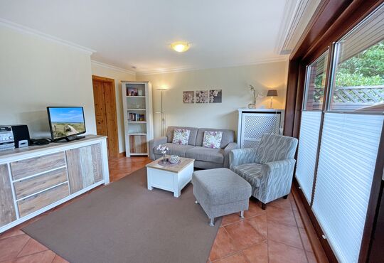 Wohnraum mit Kabel-TV, Radio/CD-Player, DVD-Player, Telefon mit Flatrate (nur Gespräche ins dt. Festnetz möglich!), Internetzugang. Südterrasse mit Tisch und Stühlen, Strandkorb (April bis Oktober).