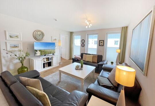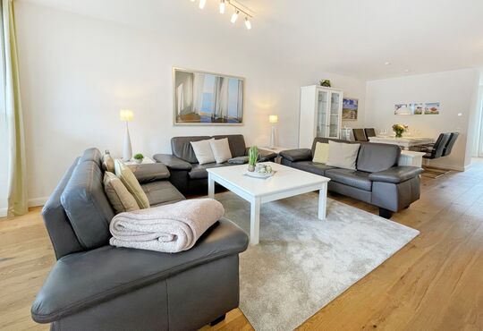 Wohnraum mit 3 Couchen, Kabel-TV, Radio/CD-Player, Telefon mit Flatrate (nur Gespräche ins dt. Festnetz möglich!), Internetzugang.