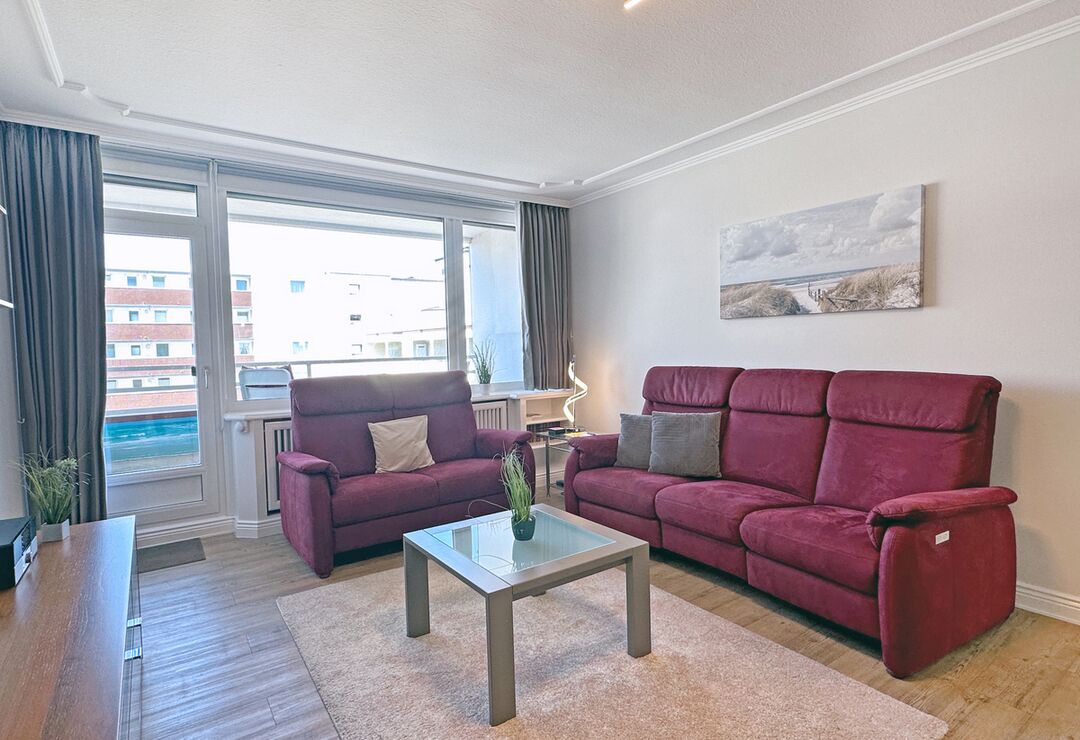 Die Ferienwohnung befindet sich in der 4. Etage eines Appartementhauses (Haus Strandstraße 22) direkt im Zentrum Westerlands, nahe der Kurpromenade.