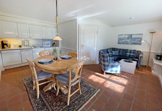 Wohnraum mit Kabel-TV, Radio, Telefon mit Flatrate (nur Gespräche ins dt. Festnetz möglich!), Internetzugang.