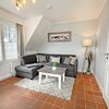 Südterrasse mit Tisch und Stühlen, Strandkorb (April-Oktober).